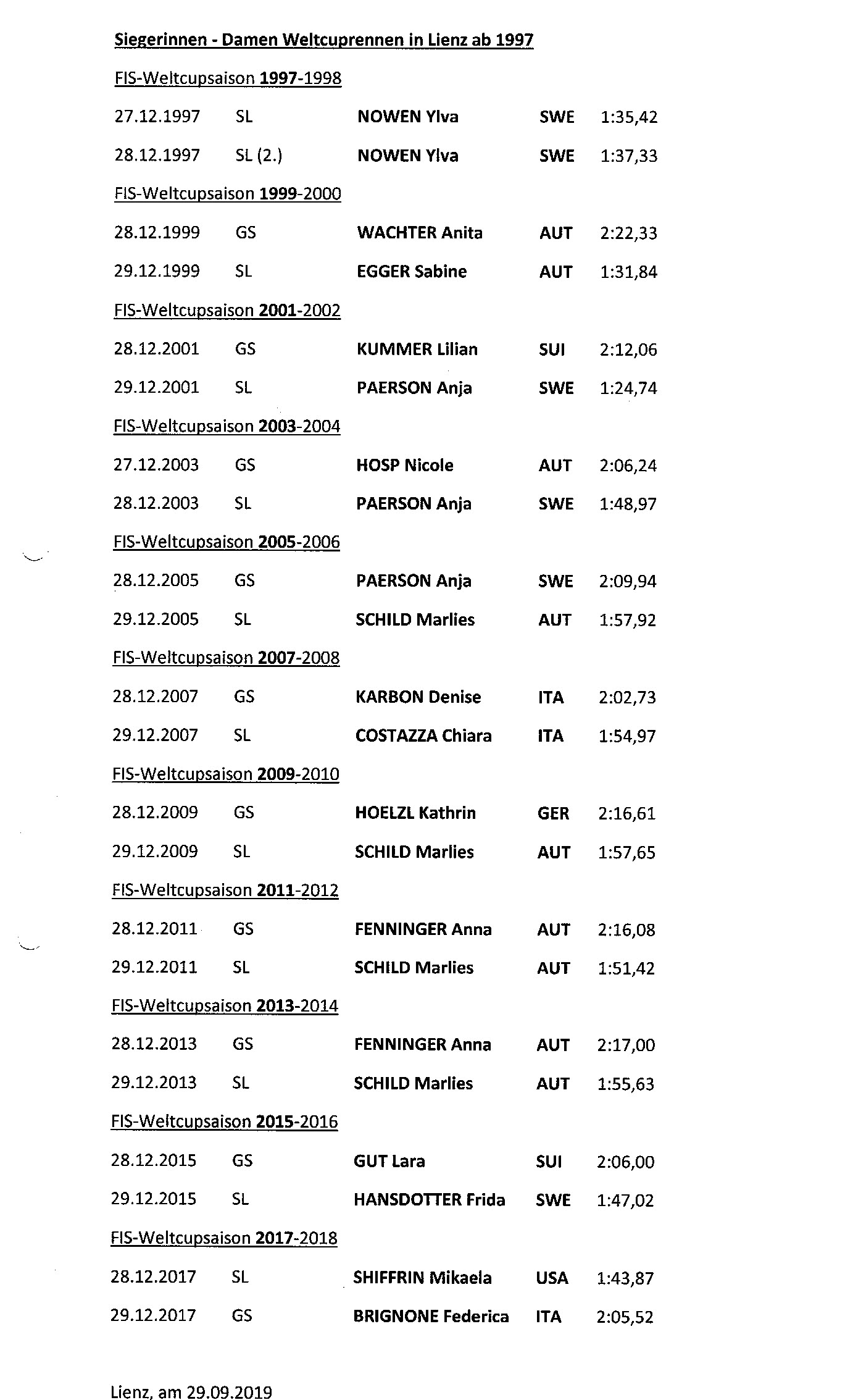 50 Jahre Weltcup Lienz